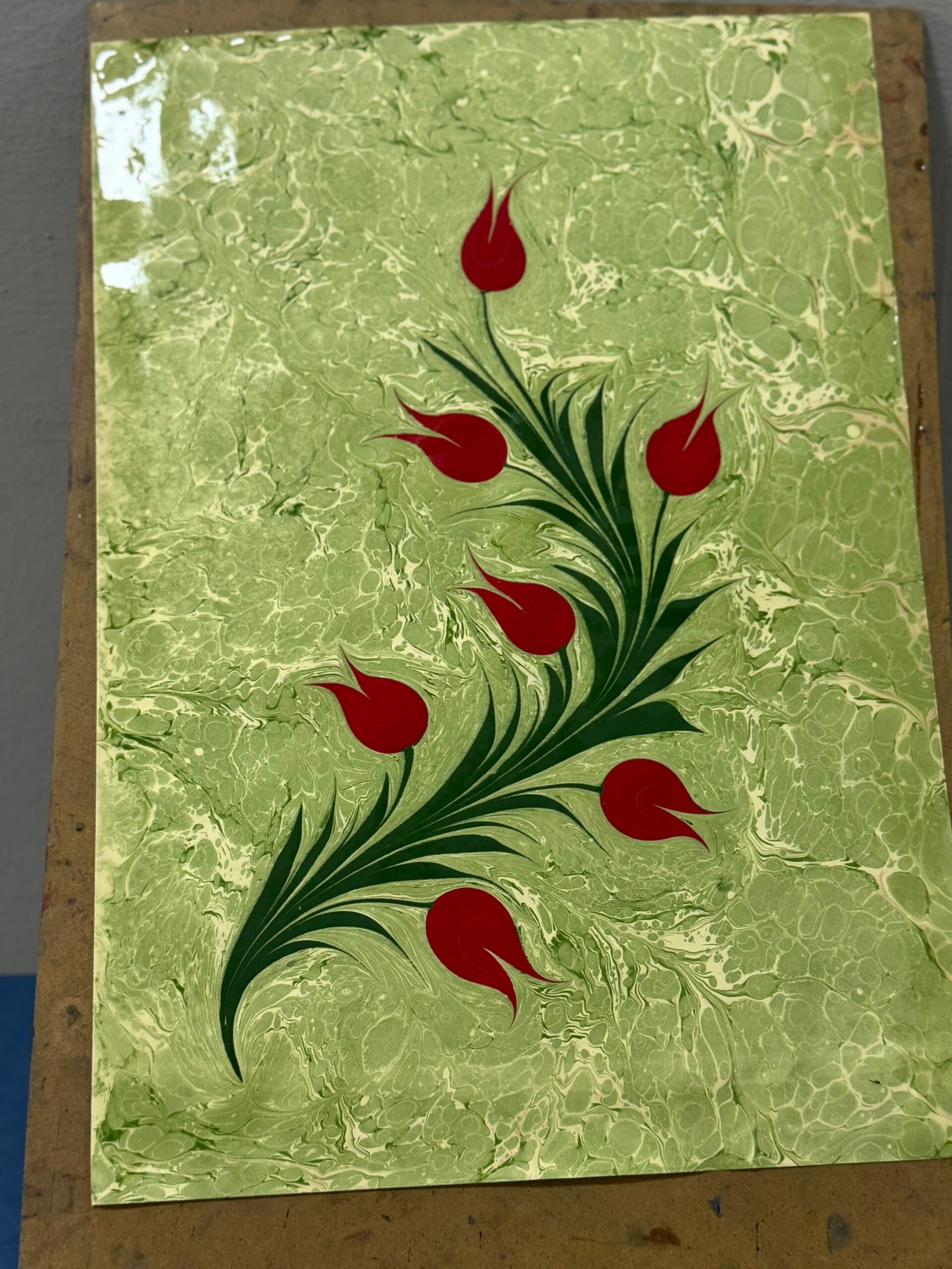 Lale Buketli Kıvrımlı Dal Ebru